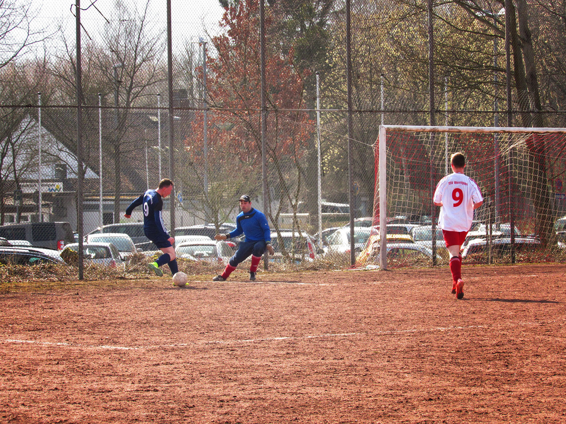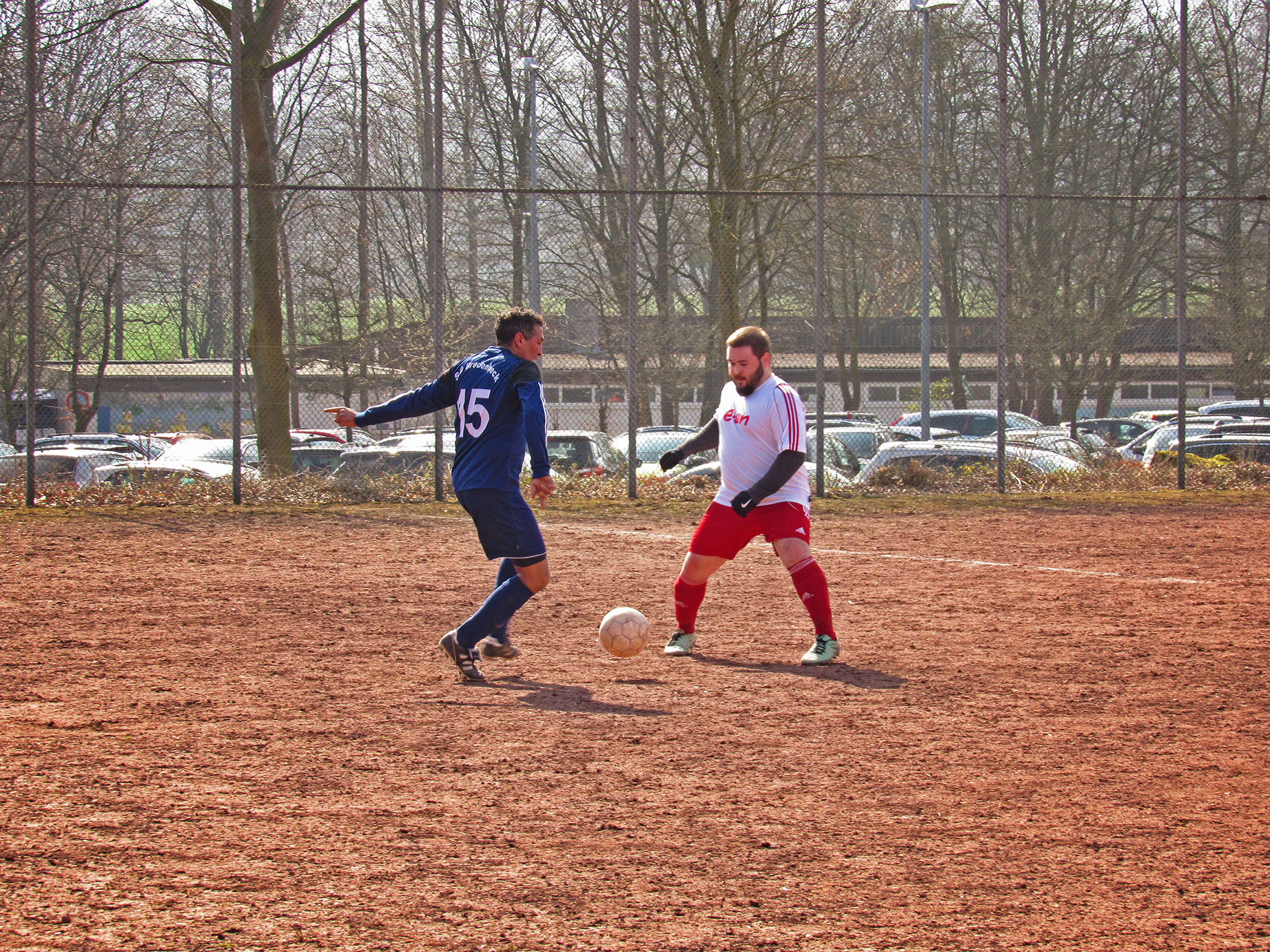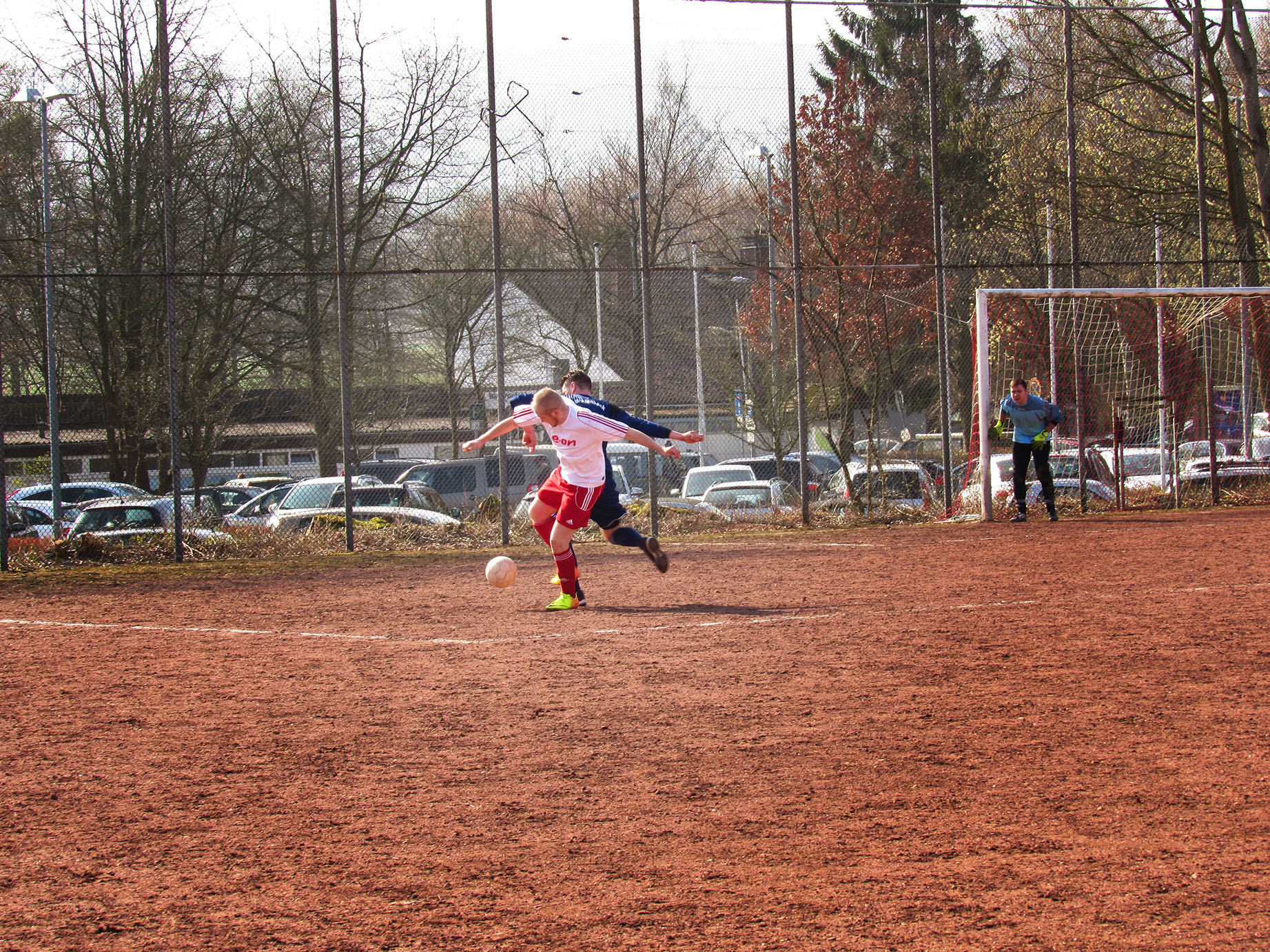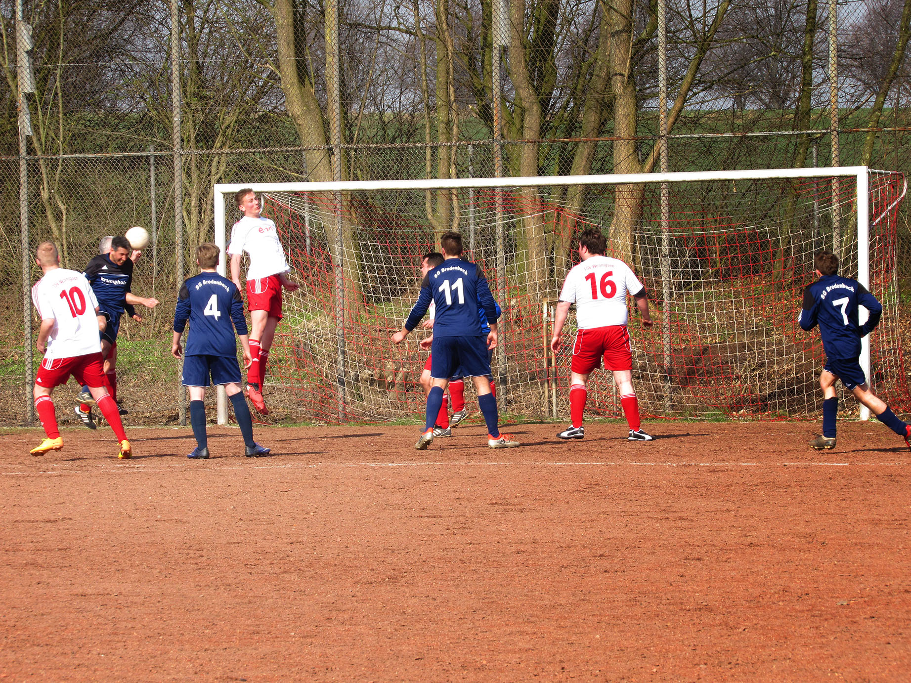 Eine halbe Stunde lang schoben sich die Bredenbecker den Ball von links nach rechts und wieder von rechts nach links, ohne wirkliche Gefahr auszustrahlen. Doch ein übermotiviertes Einsteigen von Janick Pohle brachte den Gästen einen Freistoß von derer rechten Außenbahn an der Strafraumgrenze. Butterweich wurde dieser Ball in die Mitte gechippt, wo sich Bredenbecks Routinier Rachid Safa im Kopfballduell gegen Dirk ‚Diego‘ Geveke durchsetzte und aus 5 Metern die Führung für die Gäste erzielen konnte. Die Gastgeber waren nun gefordert, angesichts der personellen Situation jedoch bewahrte man Ruhe und sammelte bis zum Halbzeitpfiff Kräfte, ohne ein Risiko einzugehen. Der Umstand, dass Winterneuzugang Timo Volkwein die kompletten 90 Minuten auf der 6 bestreiten musste und Jan 'Pavel'Dochow Rechtsverteidiger war, zeigte wie sehr es um die 3. Herren personell bestellt war. Beide machten darüber hinaus für ihre Verhältnisse einen hervorragenden Job.