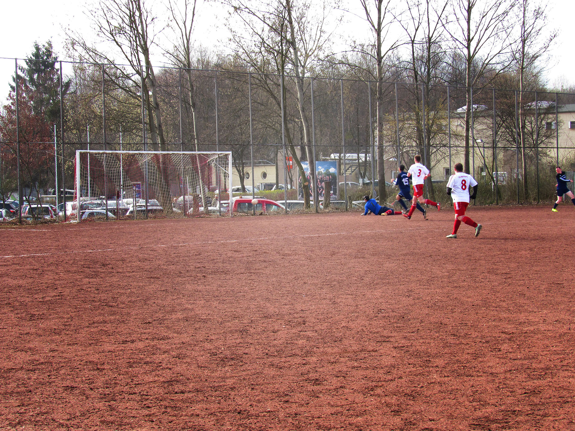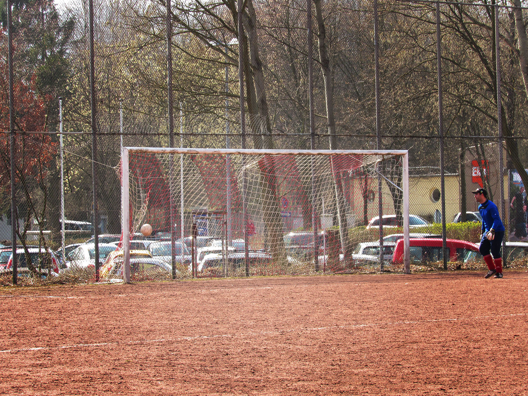 Dann brach die letzte Viertelstunde an und angepeitscht von den verletzten Akteuren an der Außenlinie öffnete sich der Defensivverbund zu einem umkoordinierten Haufen, der sein Glück in der Offensive suchte und irgendwie den Ausgleich erzielen wollte. Mangelte es oftmals an der nötigen Technik oder den mittlerweile immer schwierigeren Platzverhältnissen (die Sonne zeigte sich in ihrer schönsten Pracht, der Platz wurde je länger das Spiel dauerte immer härter), so kam man in der 87. Spielminute zu dieser berühmt, berüchtigten einen Chance, die den Spielverlauf hätte auf den Kopf stellen können.