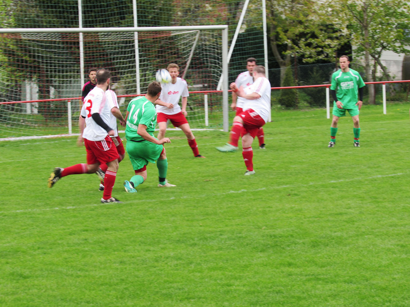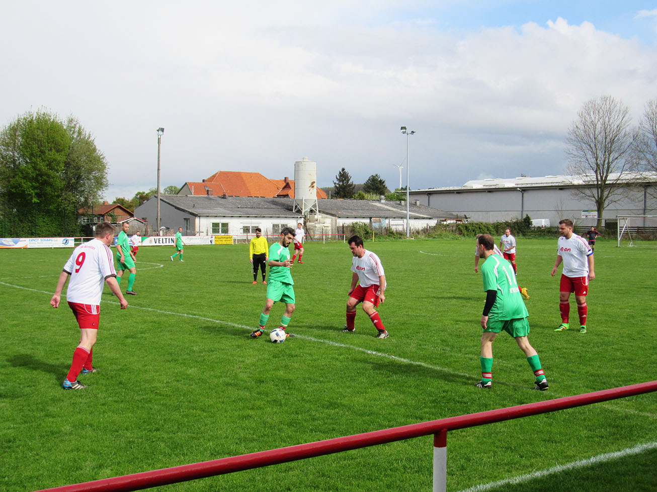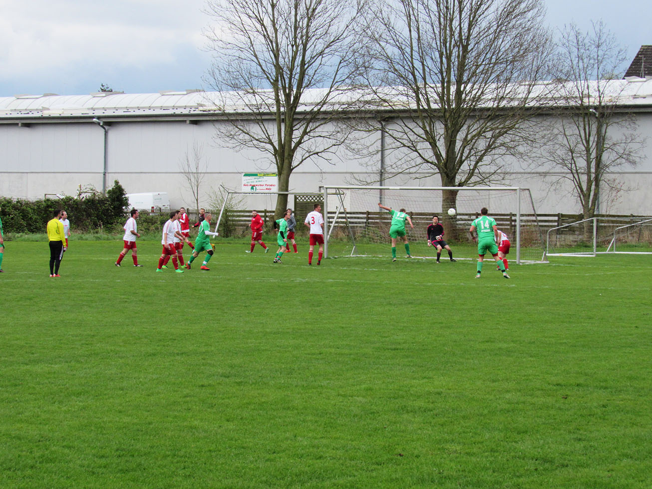Dennoch kann der Schiedsrichter nicht der Grund für die desaströse Anfangsphase gewesen sein! Vielleicht die ungewohnte Uhrzeit am Nachmittag, vielleicht das Warten auf den Unparteiischen oder vielleicht lag es auch einfach an der falschen Einstellung der ersten elf Mann. Man weiß es nicht so genau, die in grün spielenden Gastgeber aus Holtensen waren jedenfalls von der ersten Minute an hellwach, griffiger im Zweikampf und drückten dem Spiel ihren Stempel auf. Es dauerte nicht lange, da wurde Schlussmann Soeren Engelking auch schon auf Betriebtemperatur gebracht. Haarsträubende Querschläger und mangelhaftes Zweikampfverhalten ließen den Eindruck erwecken, dass zwischen beiden Mannschaften ein Klassenunterschied herrschen würde.