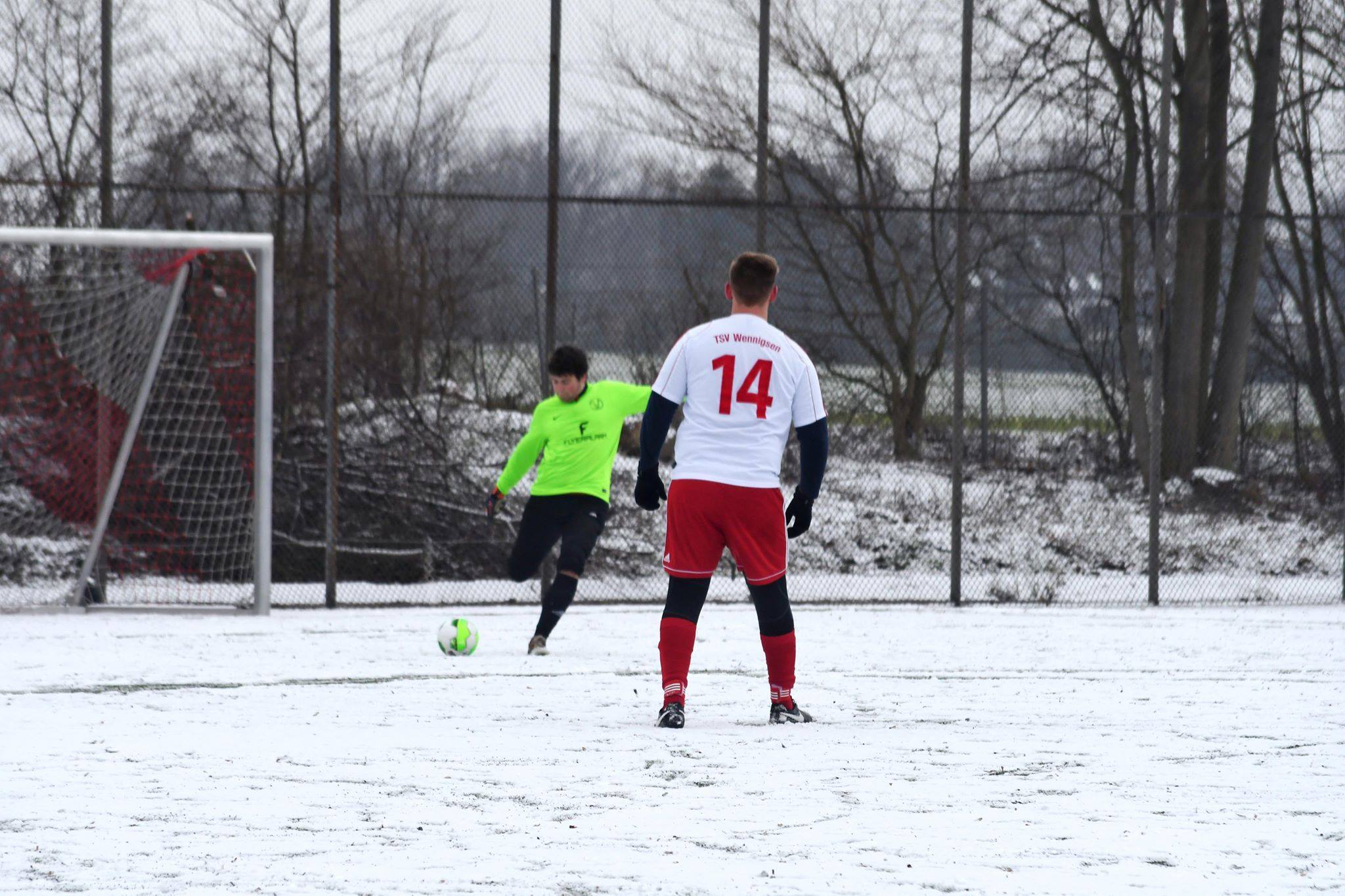 Trotz oder wegen zwei intensiver Einheiten unter der Woche, lieferte die Mannschaft von Trainer Wasner vergangenen Sonntag ein richtig starkes Testspiel ab, wo der Schnee nur so dahin schmolz! Gegen die zwei Klassen höher spielenden Jungs von SV Dedensen II gewann die Dritte am Ende 6:1 (3:0). Stellte man sich zunächst auf eine Abwehrschlacht ein, rieb sich der neutrale Zuschauer gegen Mitte der ersten Hälfte wohl verwundert die Augen. Die Defensive Wennigsens stand kompakt. Nach Ballgewinn waren nur wenig Sekunden nötig, um das Dedensener Mittelfeld auseinander zu hebeln und vor des Gegners Tor zu kommen, wo man u.a. auch dank neuer Bälle (die der Föderverein bereitstellte), für ordentlich Gefahr vor dem Tor sorgte. Darüber hinaus funktionierten die schon die in der Hinrunde einstudierten Standards und so war Jan Bähre's Führungstor nach einem Eckball der Türöffner für einen ereignisreichen Testspieltag, in der der Schiedsrichter Markus Bettac letztlich wenig zu tun bekam, hielten sich doch beide Mannschaften an das Fair-Play. Wie auf der eigenen Facebook-Seite beschrieben waren die Stürmer im Dienst der Weiß-Roten treffsicherer als Weydandt oder Wood, was sich am Ende auch bei der Torfolge bemerkbar machte. Einzig bei einem Eckball des Gegners war man nach der hohen Führung nicht bereit, den entscheidenden Schritt mitzugehen, sodass es einen Gegentreffer gab. Anonsten kamen die fünf anwesenden Zuschauer ganz auf ihre Kosten.