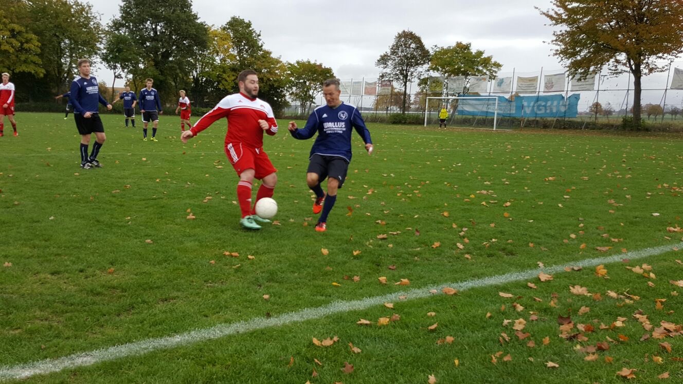 Doch nach dem Seitenwechsel und in Person von Felix Vogel, Jan Dochow und Jakob Peters mit frischem Wind entwickelte sich zunehmend eine Partie auf ein Tor, wo es nur eine Frage der Zeit war, wann der Ausgleich fallen sollte. Ali Azimi und Daniel Steinmüller haben auf den Außenbahnen in der ersten Halbzeit den Gegner müde gespielt, die eingewechselten Spieler durften dann die Lorbeeren ernten. Zudem war die Abwehr um die Routiniers Sascha Diekmann, Dirk Geveke und Sven Huppert sattelfest und nach ihrer anfänglichen Schlafphase hellwach.