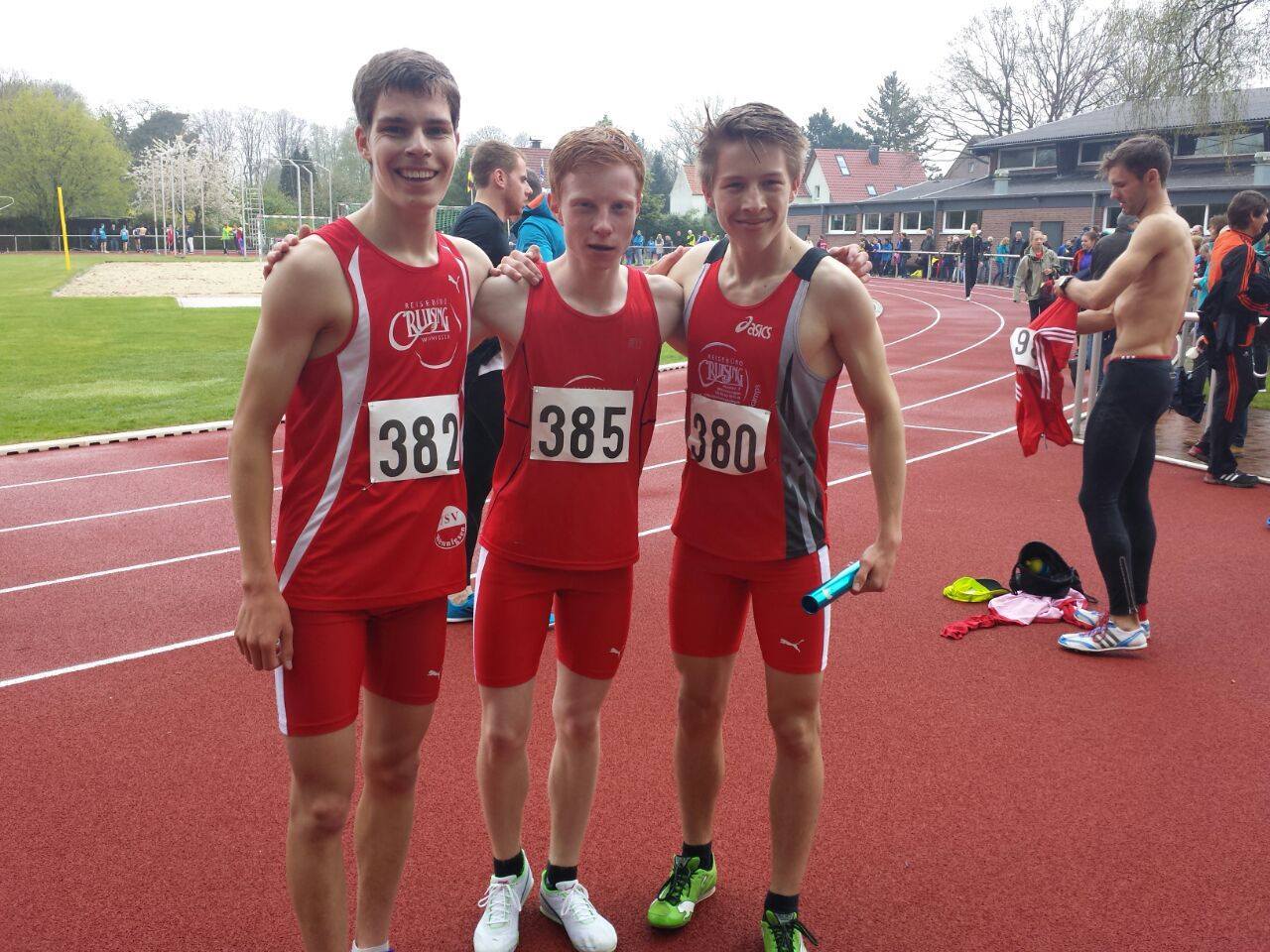 Deutlich spannender ging es bei der 3x1000m-Staffel der MJU18 mit Leon Spitzenberg Jonas Kayser und Leon Martin zu.