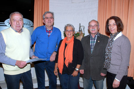 v.links: Spartenvorstand Heiner Homeyer ehrt Willi Mantik (Mitbegründer des Vereins), Helga Dieckmann (40-järiges), Winfried Gehrke, Irene Wulff (beide 25-jähriges).