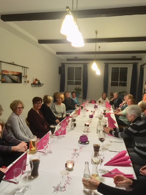 Die Montags Turngruppe Fit for Ever von Übungsleiterin Elke Müller feierte ihre diesjährige Weihnachtsfeier im Goldenen Schlüssel und Spartenleiterin Stephanie Spielmann konnte 22 Frauen begrüßen. Unter dem Motto Wundertüte hatte Elke für die Anwesenden wie jedes Jahr kleine Päckchen gepackt, die nach Rangliste ( Teilnahme im Jahr am Turnen) verteilt wurden. Nach dem leckeren Essen wurde von Heike Strobel eine Weihnachtsgeschichte vorgelesen und danach klang der Abend bei netten Gesprächen aus.