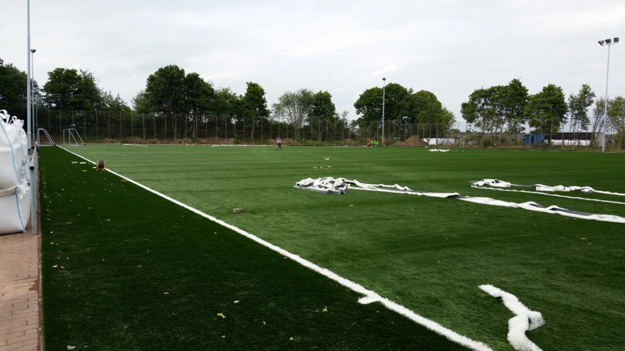Das zuvor von einem Prüflabor auf toxische Belastung geprüfte und für unbedenklich eingestufte Gummigranulat ist am 10.06.2017 auf den frischen Kunstrasenbelag aufgetragen worden.